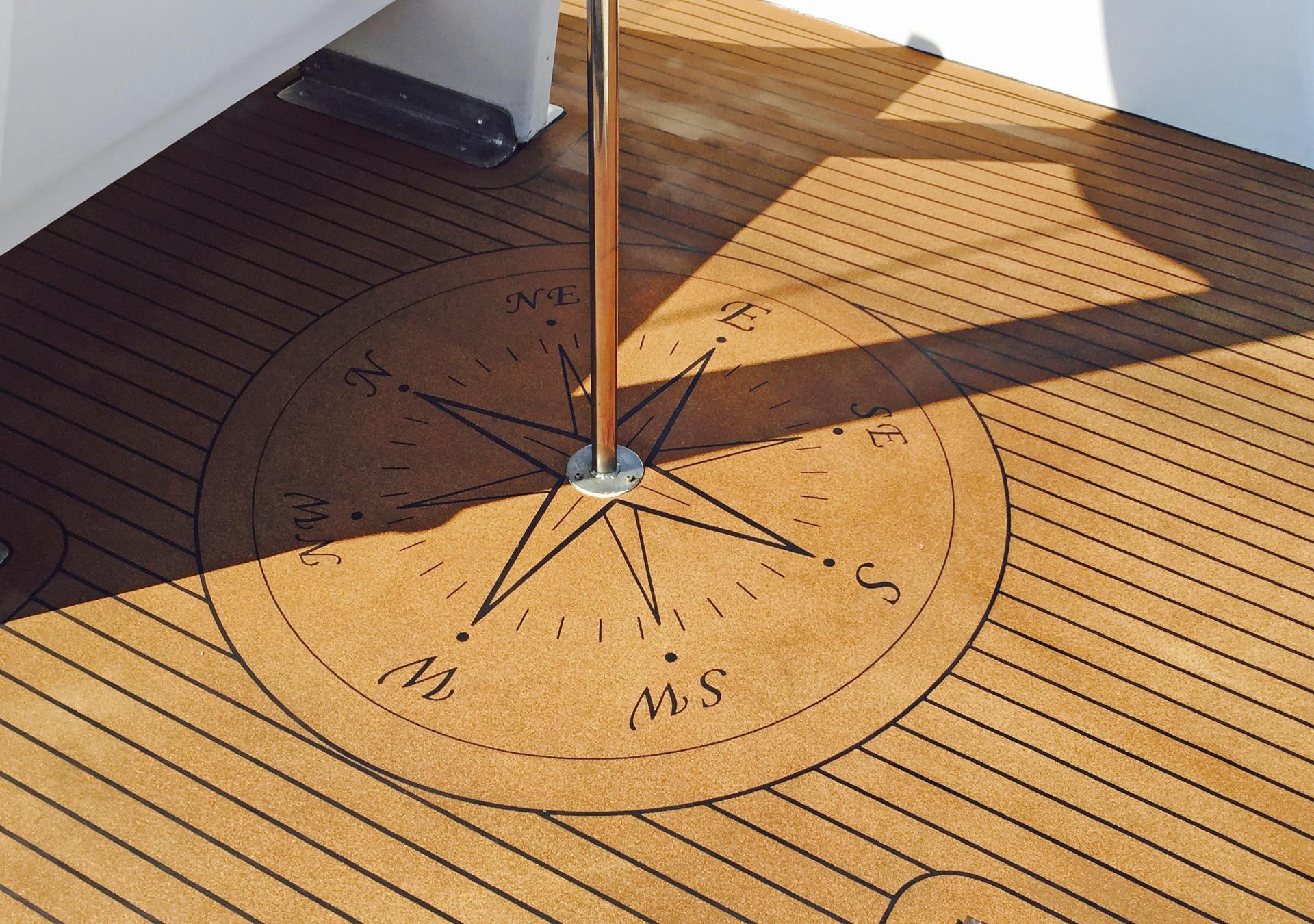 A személyre szabott CORKLINE® felületek ideálisak arculatépítéshez, vizuális megjelenés javításához, egyedi fedélzeti dizájn kialakításához és a hajó identitásának hangsúlyozásához.