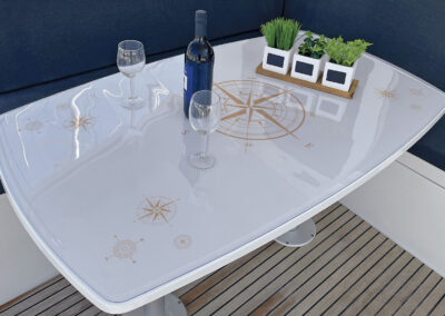 Dostupna je u više debljina te se može izraditi prema individualnim mjerama, šablonama ili tehničkim nacrtima, što je čini idealnim rješenjem za personalizirane projekte. Dodatna mogućnost oslikavanja logotipa, uzorka ili slika u boji omogućuje estetsko usklađivanje s ostatkom plovila ili prostora, te pruža mogućnost brendiranja i vizualnog podizanja svake radne površine.